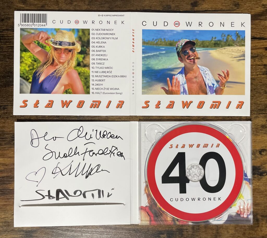 * najnowsza płyta Sławomira „Cudowronek” ze specjalną dedykacją i autografem. Album podarowany przez piosenkarza;