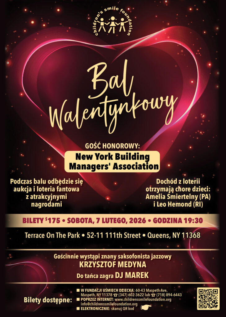 Bal Walentynkowy to także okazja do uhonorowania osoby lub instytucji, która w sposób szczególny wspiera Children’s Smile Foundation. W tym roku Gościem Honorowym balu będzie stowarzyszenie The New York Buildings Managers’ Association, najstarsza – działająca od 1917 roku – i jedna z największych organizacji zrzeszających menedżerów nowojorskich budynków.